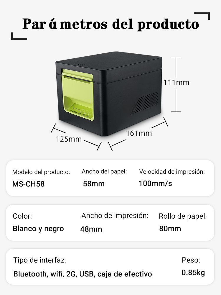 La impresora térmica de recibos MS-CH58 para punto de venta está diseñada para una amplia gama de aplicaciones y satisface diversas necesidades comerciales. Si bien es una impresora compacta de 58 mm, sus potentes opciones de conectividad van mucho más allá. Puede funcionar como impresora térmica de recibos dedicada para mostradores fijos o como impresora móvil Bluetooth para servicio de mesa en restaurantes o puestos de mercado temporales. Además, para negocios que requieren tamaños de impresión más grandes, su tecnología principal también se aplica al modelo de impresora térmica Bluetooth, lo que garantiza una compatibilidad perfecta con diversas necesidades de recibos y etiquetas.