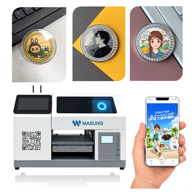 Masung MS-RY-A5, Esta mini impresora UV DIY se puede utilizar para imprimir en materiales como madera, acrílico, vidrio, metal, aluminio, cerámica, plásticos y película DTF.